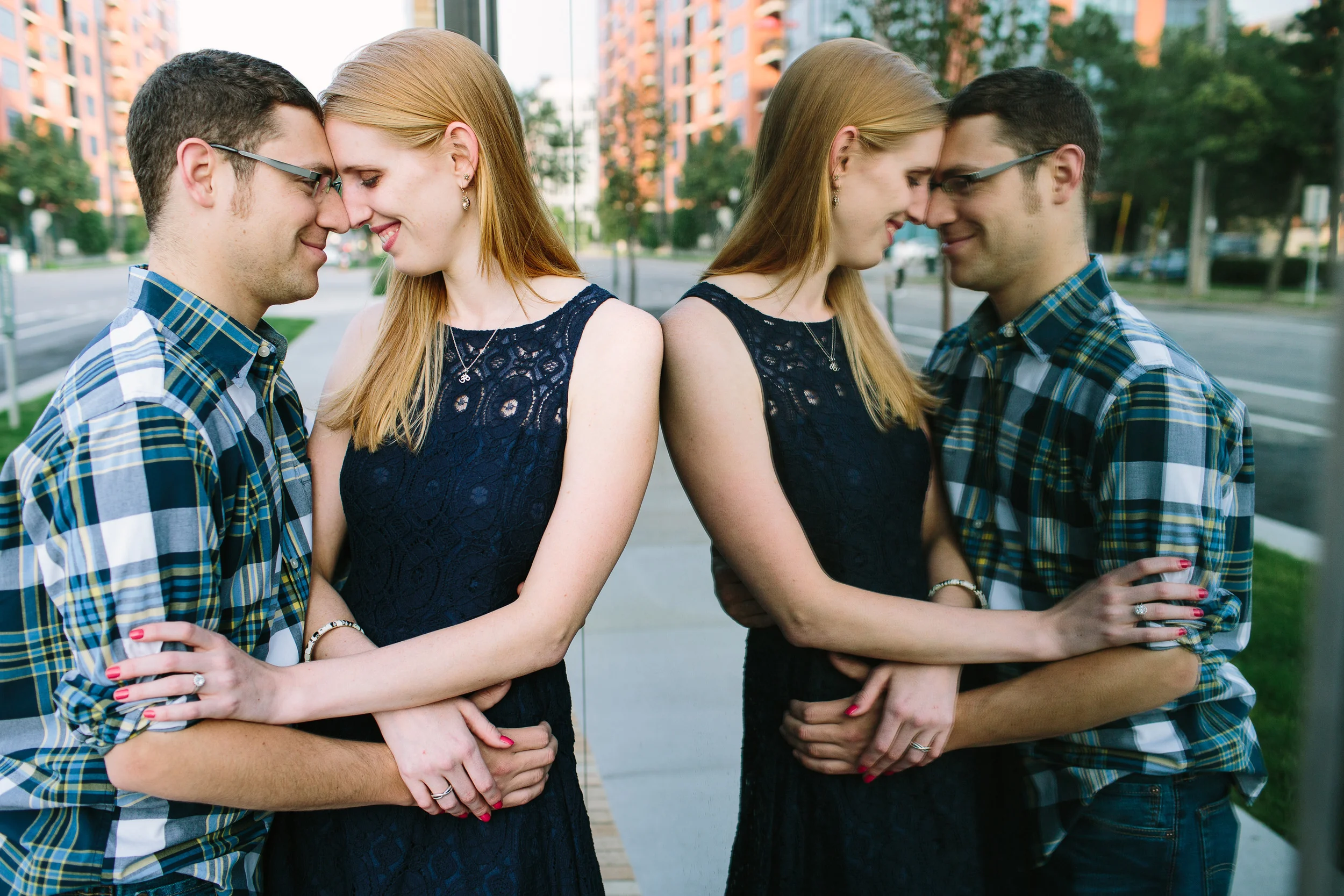 Just getting out of their car, I found Katie fixing Dan's shirt collar in preparation for our shoot. For the best light we met at 7am then strolled around Gold Medal Park, then played briefly outside the Guthrie before jumping in the car to go and shoot at Macalester College in Saint Paul where Katie and Dan started dating.